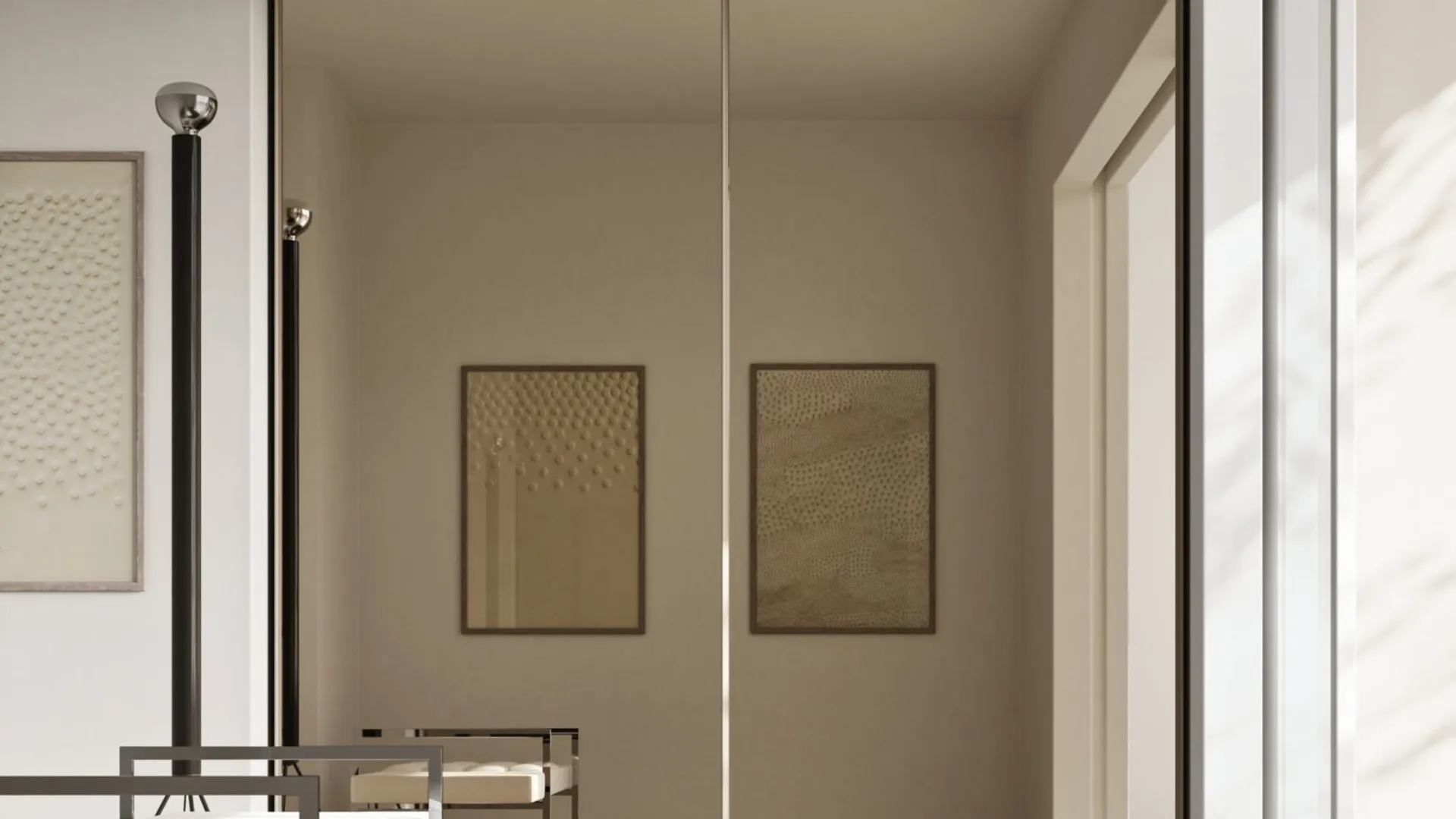 L’armadio Orme con anta Specchio, battente o scorrevole, è la soluzione perfetta per chi desidera unire stile e praticità nella zona notte. Le ante a specchio riflettono più di ciò che vedi: amplificano la luce naturale, donano profondità agli ambienti e valorizzano ogni dettaglio della stanza. Le linee essenziali e le finiture preziose trasformano l’armadio in una vera scenografia quotidiana, capace di adattarsi a qualsiasi stile d’arredo.