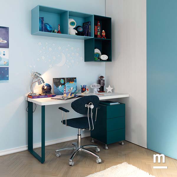 Le finiture in nobilitato Betulla, laccato Cielo, laccato Pavone e tessuto Topazio donano un tocco di colore e personalità all’ambiente. I materiali sono di alta qualità, con wallbox realizzati con tecnologia folding e dettagli in alluminio cromato, per un design moderno e resistente. Ogni dettaglio è personalizzabile: scegli tra diverse finiture, colori, maniglie e dimensioni modulari per creare la cameretta perfetta per le tue esigenze.