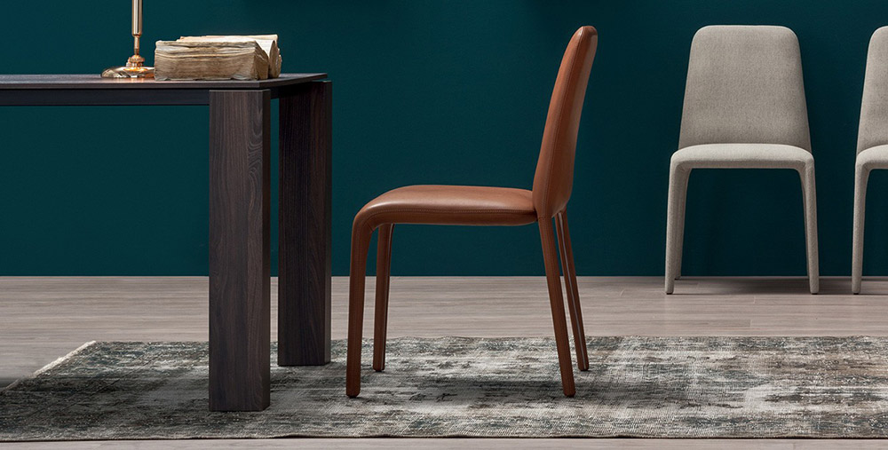 Il piano del tavolo può essere realizzato in legno massello, impiallacciato o laccato, offrendo così una vasta gamma di finiture e colori per adattarsi a diversi gusti e stili d’arredo. Le gambe, robuste e ben proporzionate, sono disponibili sia in metallo verniciato che in legno, permettendo ulteriori possibilità di personalizzazione e abbinamento con altri elementi della stanza.