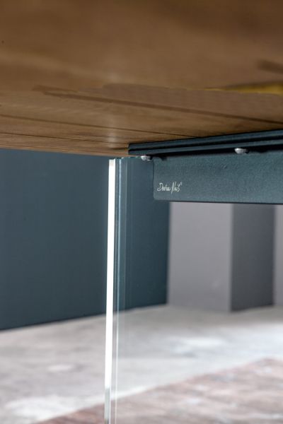 Il tavolo Manhattan di Devina Nais è un esempio di eleganza e versatilità, pensato per chi desidera un elemento d’arredo distintivo e di alta qualità. Il piano è realizzato in legno massello di rovere, materiale che si contraddistingue per la robustezza e le venature naturali, e presenta uno spessore che varia tra 3,3 e 3,5 cm. Il bordo diamantato dona al tavolo un profilo sottile sulle estremità e una maggiore consistenza al centro, garantendo sia leggerezza visiva che solidità strutturale. La gamma di finiture è molto ampia: si può scegliere tra 13 varianti naturali e oltre 20 laccature a poro aperto, così da adattare il tavolo a qualsiasi contesto stilistico.