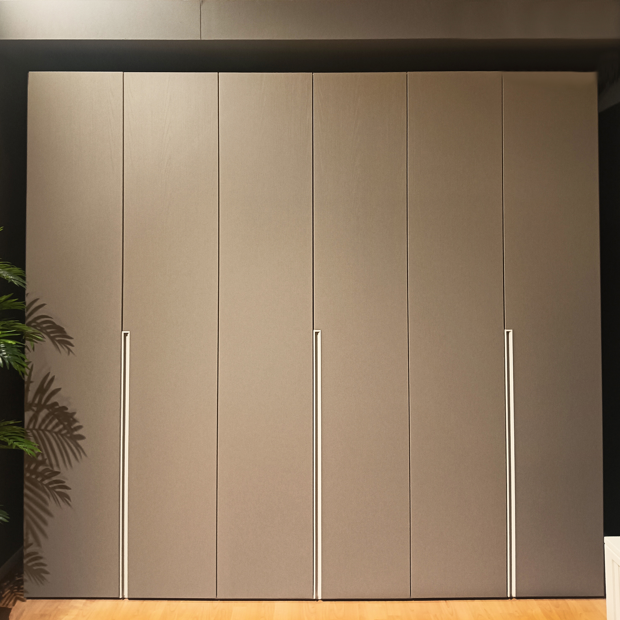 L’anta Doris, elegante e moderna, valorizza l’estetica dell’armadio, rendendolo perfetto per ambienti sia minimalisti che più ricercati. La maniglia ergonomica garantisce una presa comoda e sicura, mentre la struttura interna può essere configurata secondo le proprie esigenze, con ripiani, cassetti e accessori dedicati.