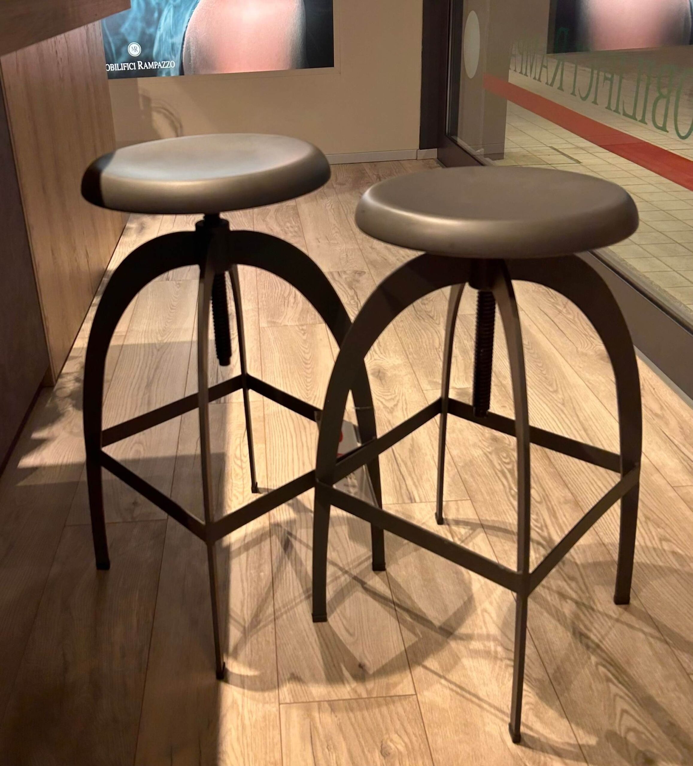 2 sgabelli Riga di Target Point: complemento d’arredo dal design moderno e funzionale, perfetto per cucine, isole e zone bar. È realizzato interamente in metallo verniciato, che garantisce robustezza e durata nel tempo. La seduta è girevole e regolabile in altezza tramite un pratico meccanismo a vite, permettendo di adattarsi facilmente a diverse altezze di piani di lavoro o tavoli.