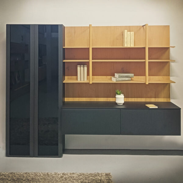 Le ante in rovere dogato donano calore e personalità, mentre la libreria Palo Alto permette di coordinare il living con la cucina, creando un ambiente fluido e armonioso. Natural è la soluzione ideale per chi cerca funzionalità, eleganza e continuità tra gli spazi.